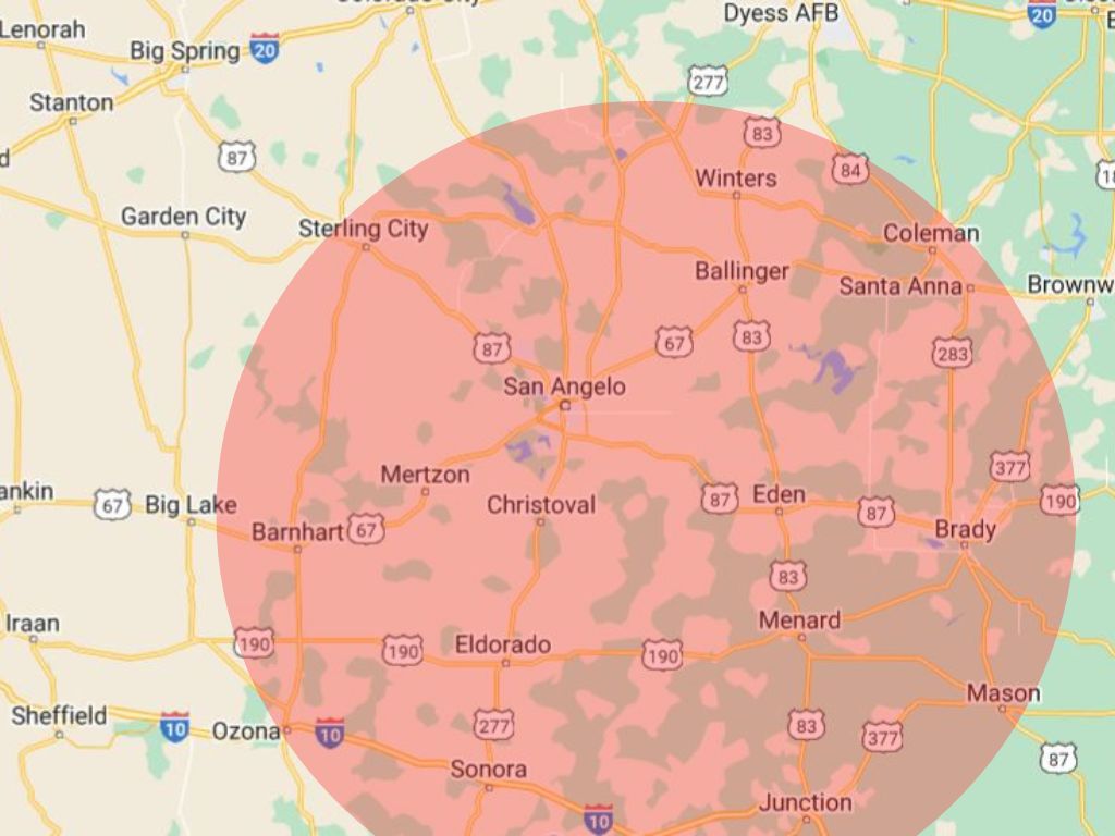 Since 1997, we’ve been a part of the San Angelo, TX area. This bustling town, nestled in the heart of Concho Valley, is neighbor to Permian Basin to the northwest, the Osage Plains to the Northeast, the Chihuahuan Desert to the southwest, and Central Texas to the Southeast. Along with the lovely, natural backdrop, San Angelo is also home to the Goodfellow Air Force Base, Fort Concho, and Angelo State University.